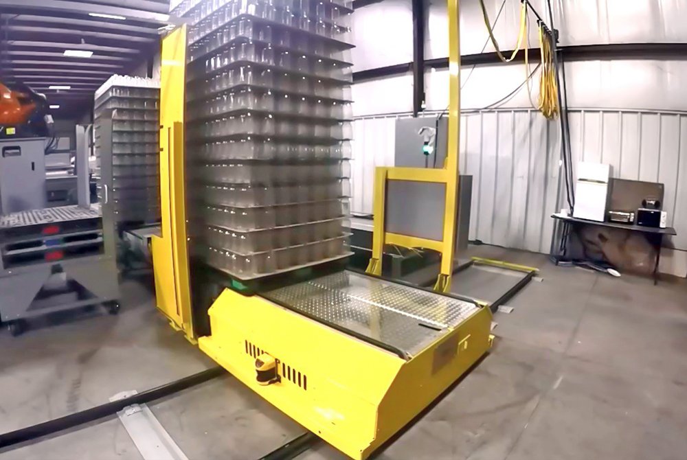 For operations looking to eliminate the need for a dedicated squeeze truck, Dyco’s Half-High Pallet, Gaylord, or Tote Stacker provides the ideal solution. The half-high pallet or tote stacker automatically stacks smaller pallets or totes to full trailer height.