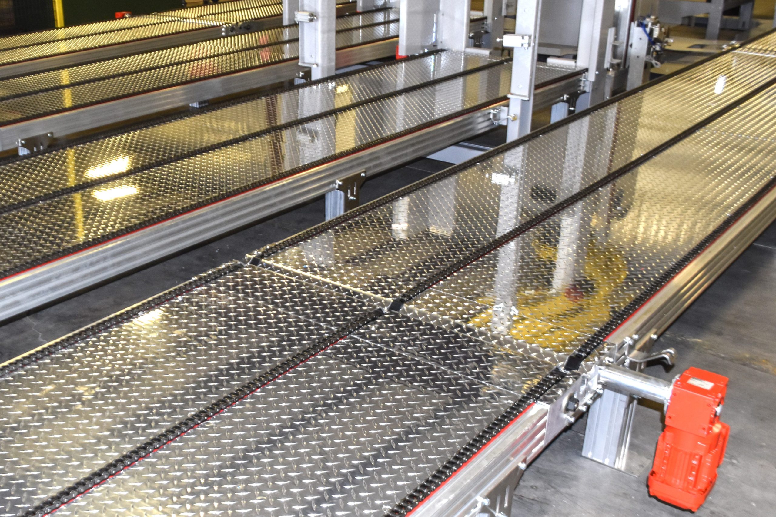 The Redline Drag Chain Conveyor is engineered to handle demanding environments while maintaining smooth and consistent movement. It’s an excellent solution for staging, accumulation, or integrating with automatic palletizing systems—helping reduce manual handling and streamline operations.
