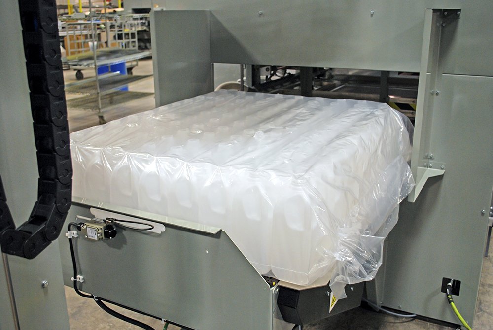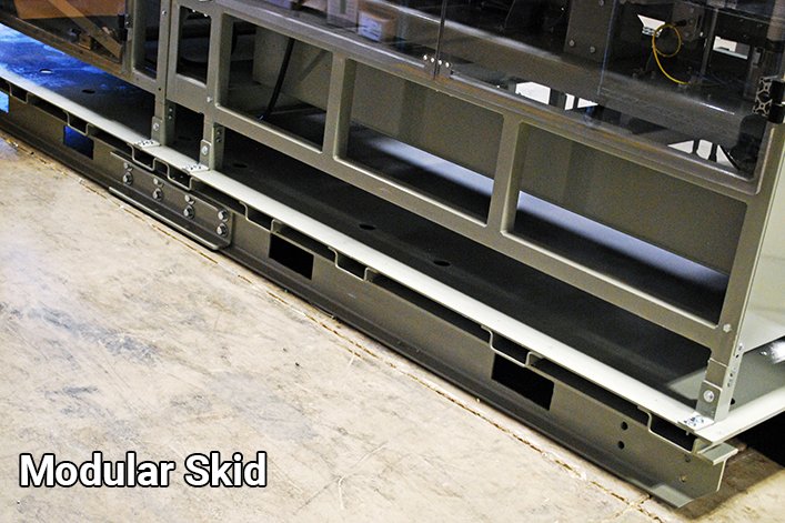 The Modular Skid, which incorporates fork truck pockets, enables easy transportation and integration into automatic bottle bagging machines on your shop floor.