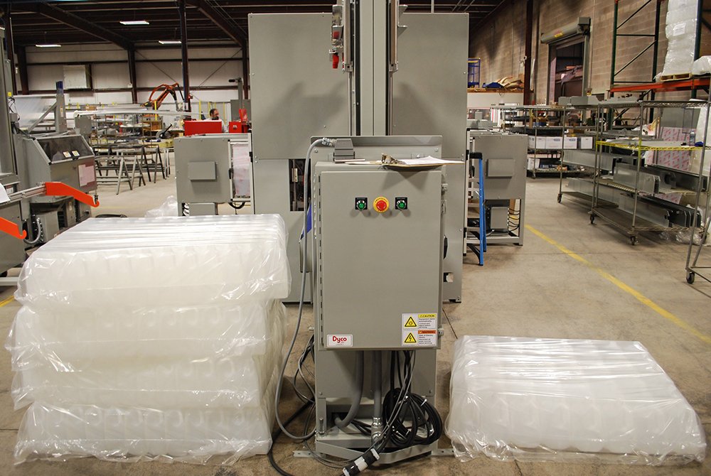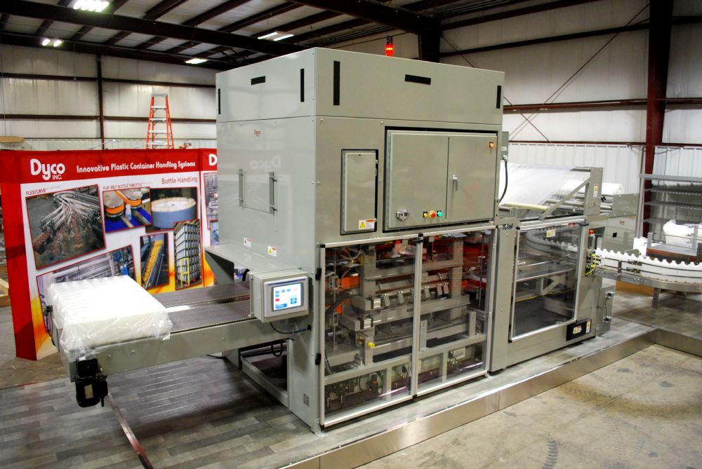 Meanwhile, the Film Tension capabilities on Dyco’s automatic bottle bagging machines are second to none in the industry. Dyco systems bag multiple shapes and sizes of bottles and then provide a tight film wrap around any shape and size. The film tension allows your operation to have neat bundles for easy transport.