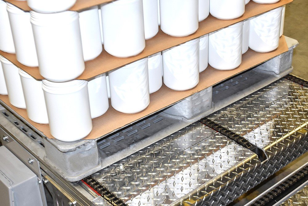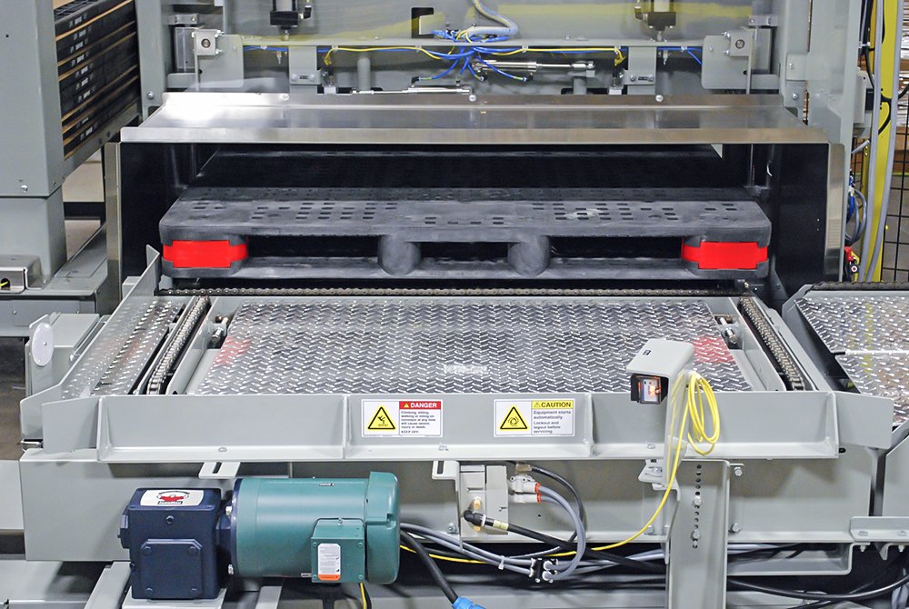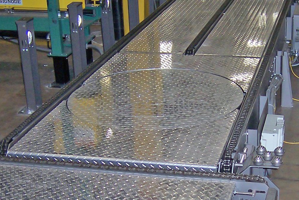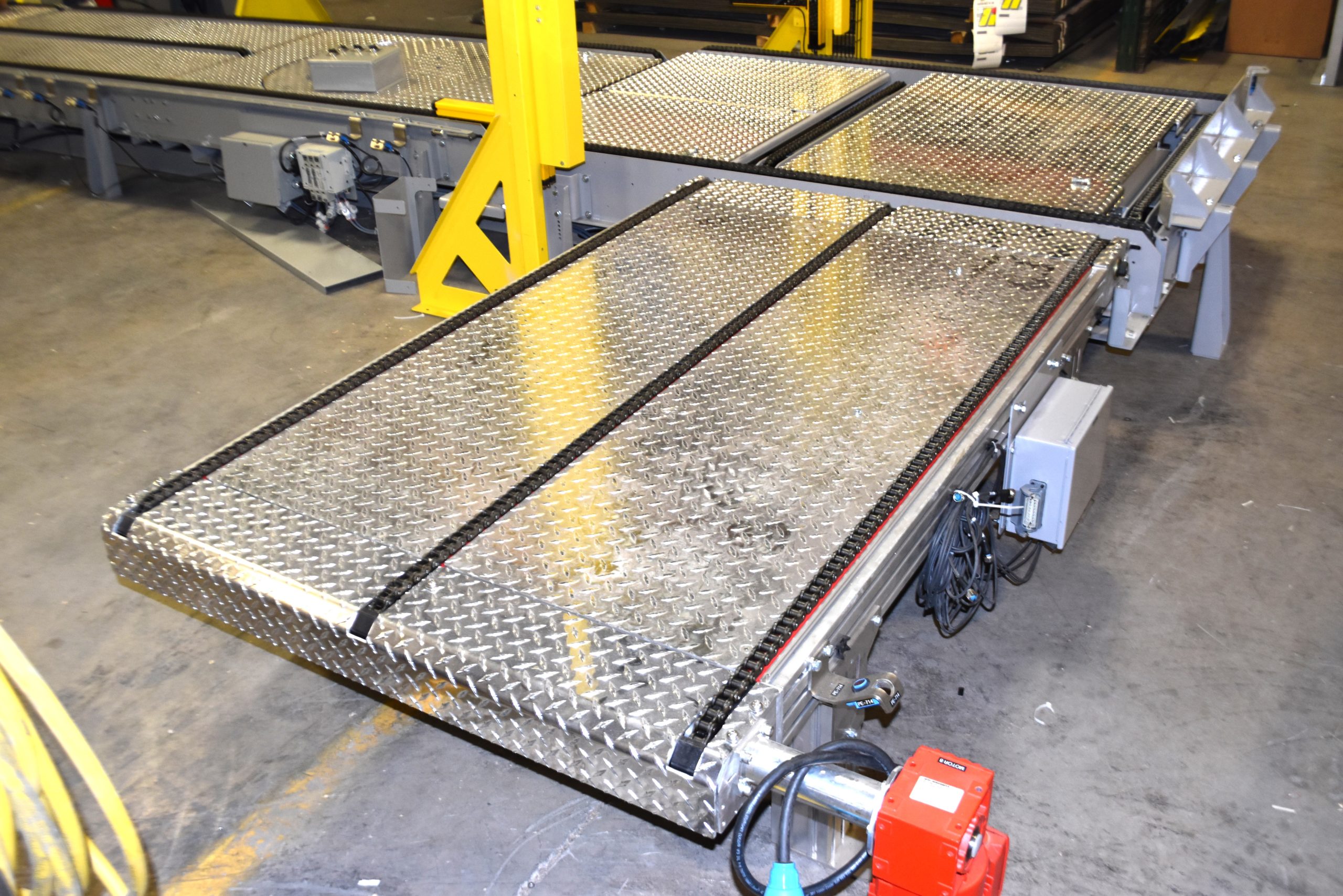 - Full line of drag chain pallet conveyors and control systems allow system integration and total system operation integrity