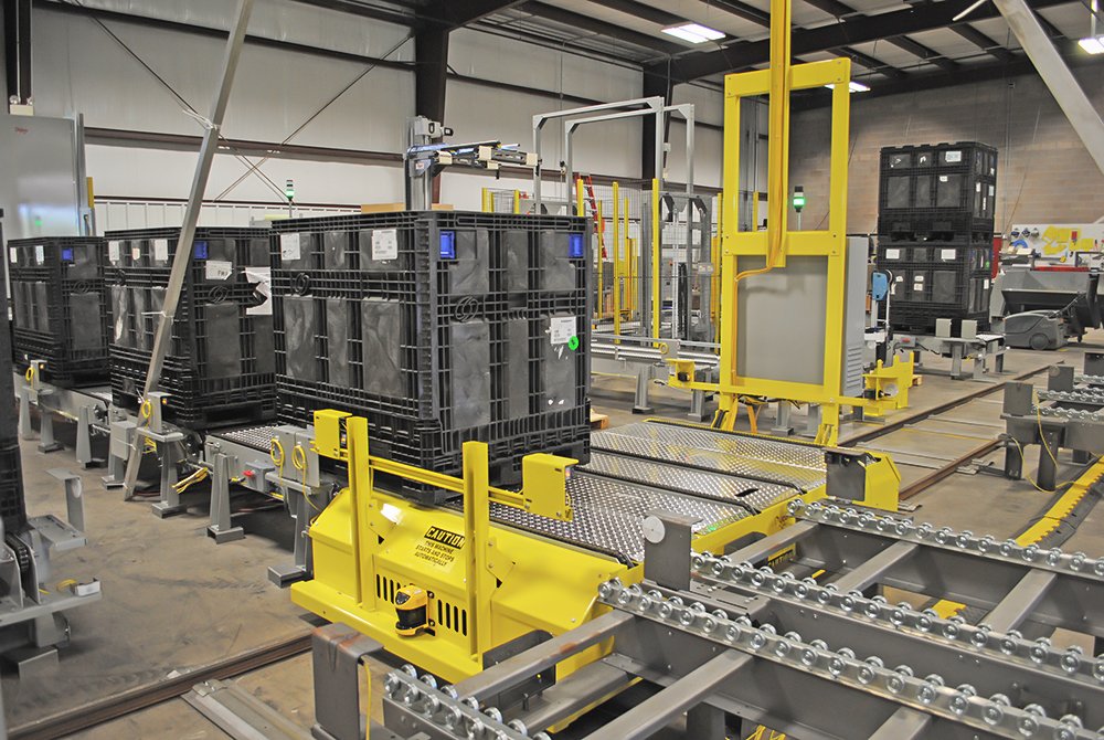 Dyco’s Pallet Transfer Carts provide an economical and innovative means to shuttle palletized loads. The pallet transfer carts come with integrated and redundant safety sensors to provide a reliable and safe operation that does not interrupt product flow.