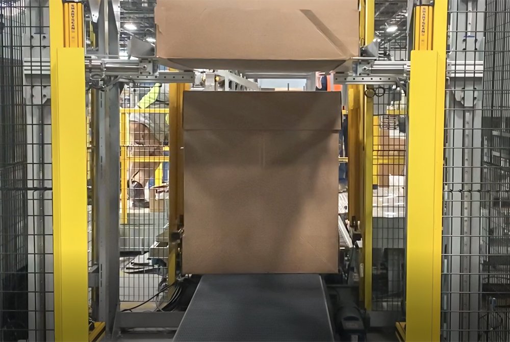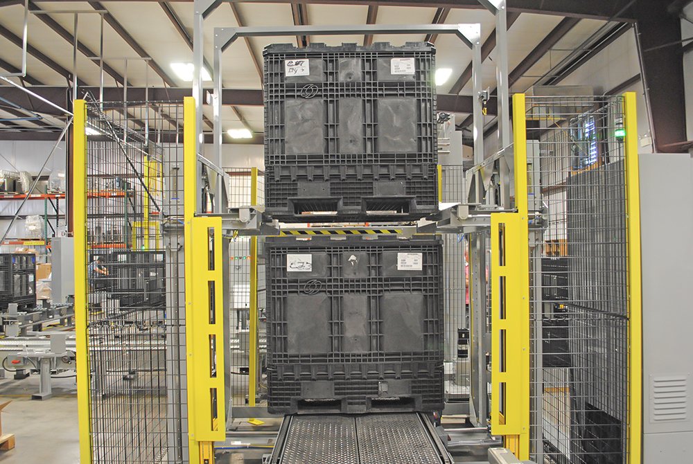 For operations looking to eliminate the need for a dedicated squeeze truck, Dyco’s Half-High Pallet, Gaylord, or Tote Stacker provides the ideal solution. The half-high pallet or tote stacker automatically stacks smaller pallets or totes to full trailer height.
