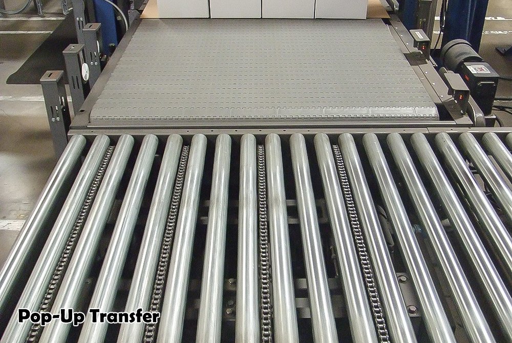 Dyco’s driven roller has optional Pop-Up Transfer chains for right angles or chain-to-chain roller transitions available.