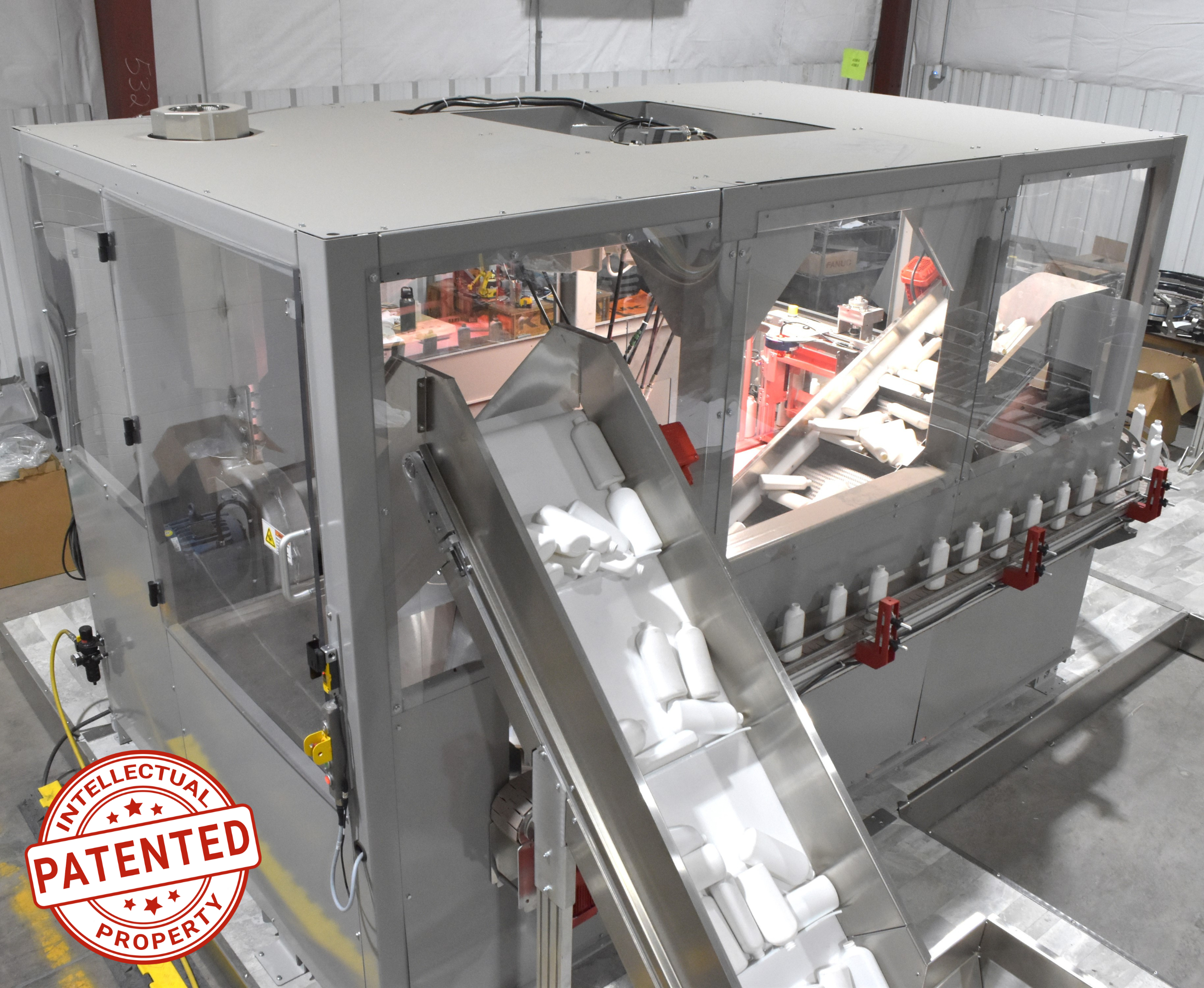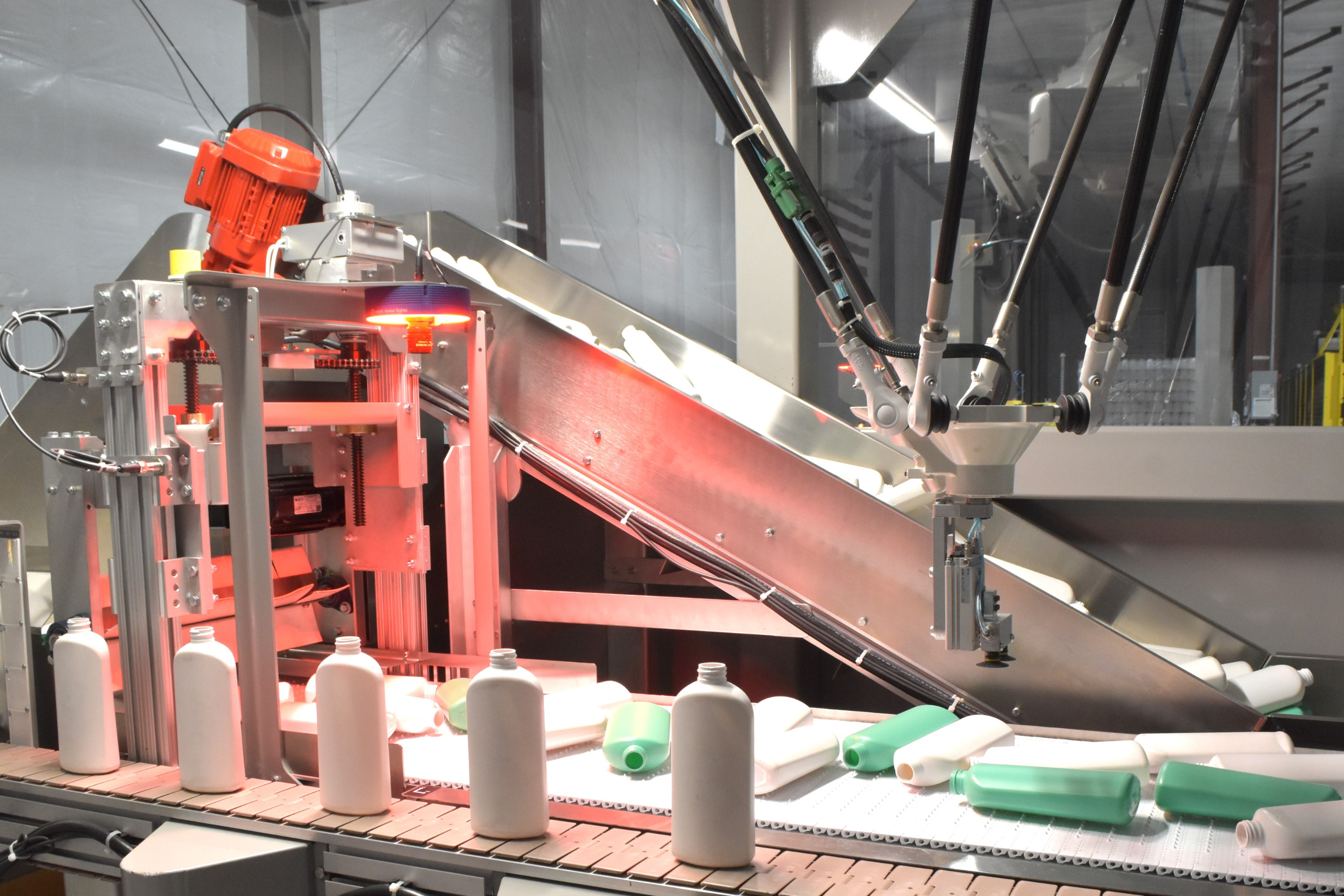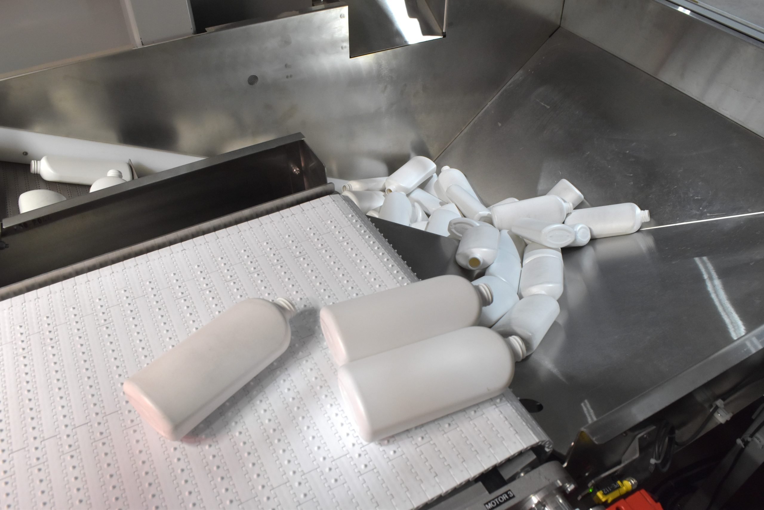Dyco’s patented Robotic Unscrambler takes functionality to the next level with a design that ensures reliable container orientation while simultaneously separating rejected containers. These machines ensure that bottles, jars, and other containers are precisely oriented for filling, labeling, or sealing, improving production efficiency and reducing manual intervention.