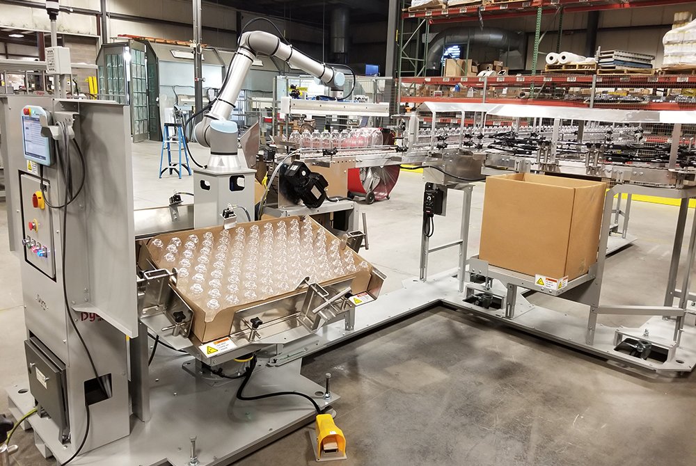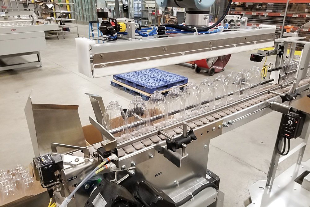 Dyco’s High-Speed Tray Loading is fully-automatic and provides efficient and fast loading of multiple bottle-and-tray combinations within a single system. Our quick change, end-of-arm tooling offers adaptability to many bottle and tray configurations and sizes.