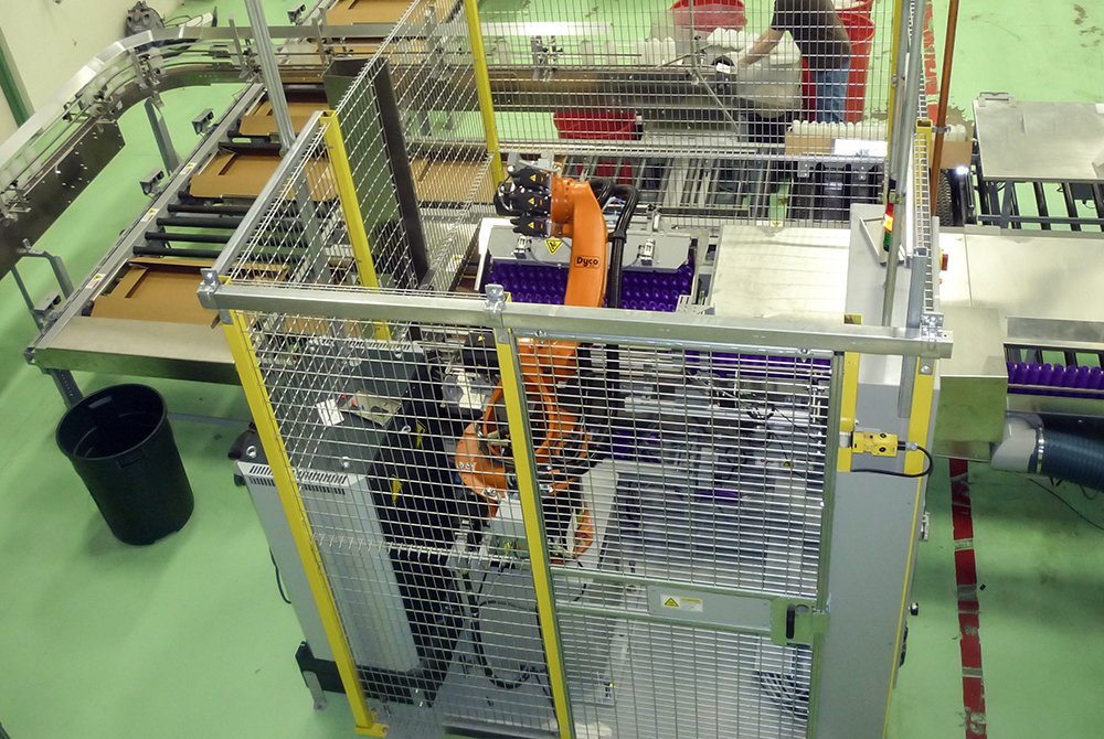 Automate the labor intensive parts of your operation with Dyco’s Automatic Tray Loading system – compatible with both fold flat and tab lock trays. The quick change, end-of-arm tooling and easy-to-use HMI interface makes our solution highly adaptable for many different bottle and tray configurations. The tray loader tightly nests bottles to reach the maximum bottles-per-tray capacity.