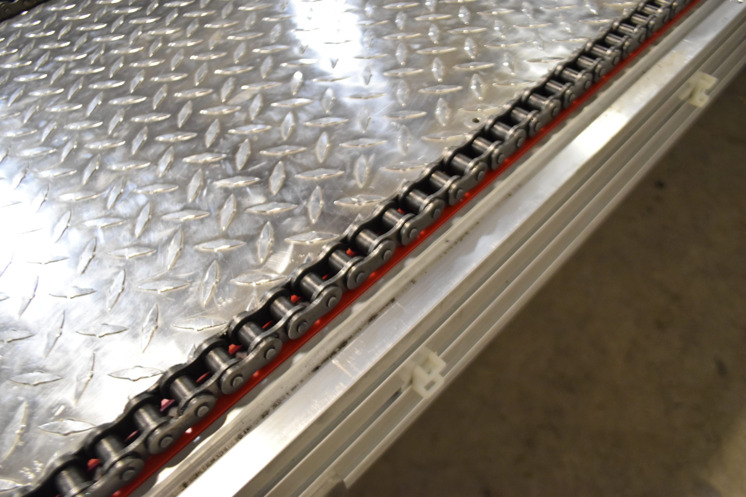 The Red Line Aluminum Table Top Bottle Conveyor will provide noticeable differences within your operation. The Red Line conveyor system is designed for long runs and minimized chain surging, with virtually no gap between chains on drive/idler transfers. As a result, this benefit ensures consistent bottle transfer.