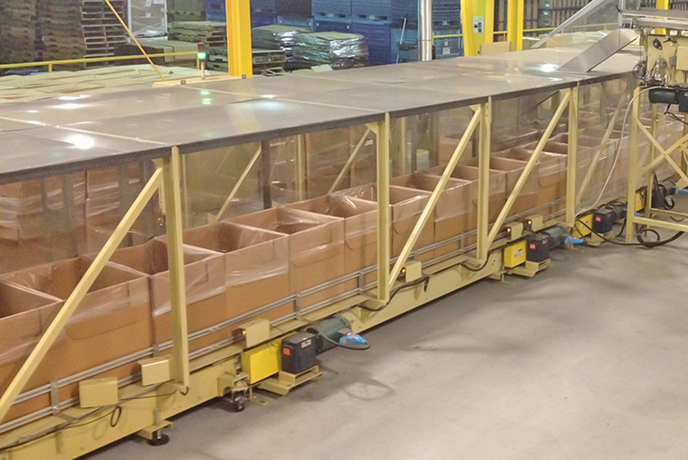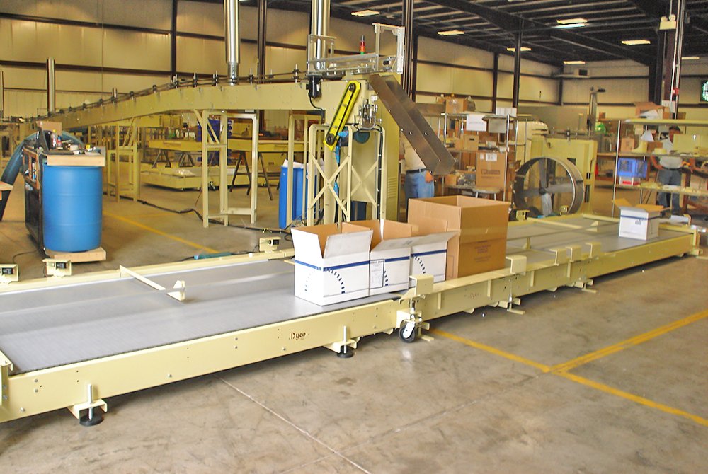 Dyco’s Table Top Box Conveyor comes with a variety of chain sizes which allow our conveyors to be tailored to fit your specific application. We also install our table top conveyor overhead or at ground level as additional options to convey your boxes around the production floor.