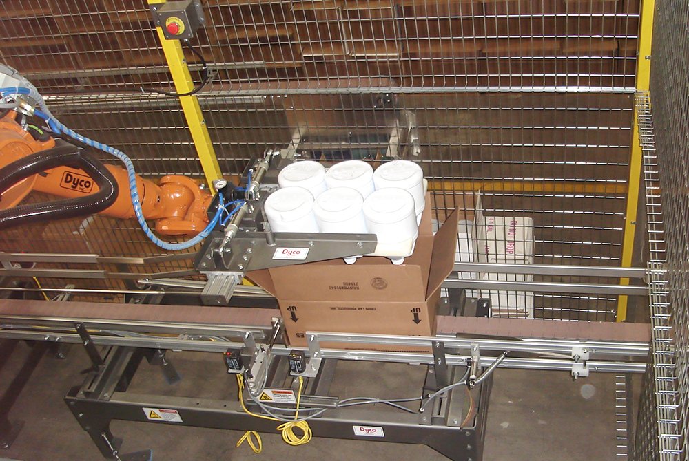 Dyco’s Collaborative Solutions automate the labor intensive parts of your operation, allowing for better utilization of workers. Safety sensors stop or change modes of the machine, eliminating the need for safety fencing.
