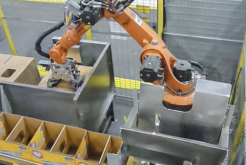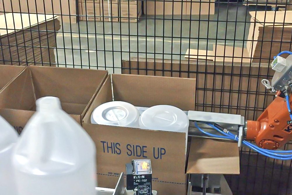 Dyco’s Partition Inserting application inserts partitions completely and accurately, preventing product movement inside the box during shipment. The industrial robotic arm provides high accuracy for precise partition pick and placement.