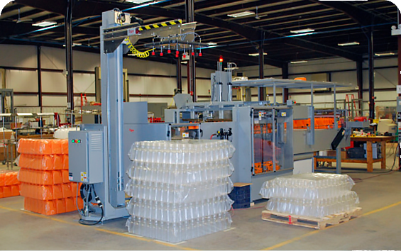 Dyco offers a full line of standard rotary and automatic bundle stacking solutions for handling bagged plastic containers.