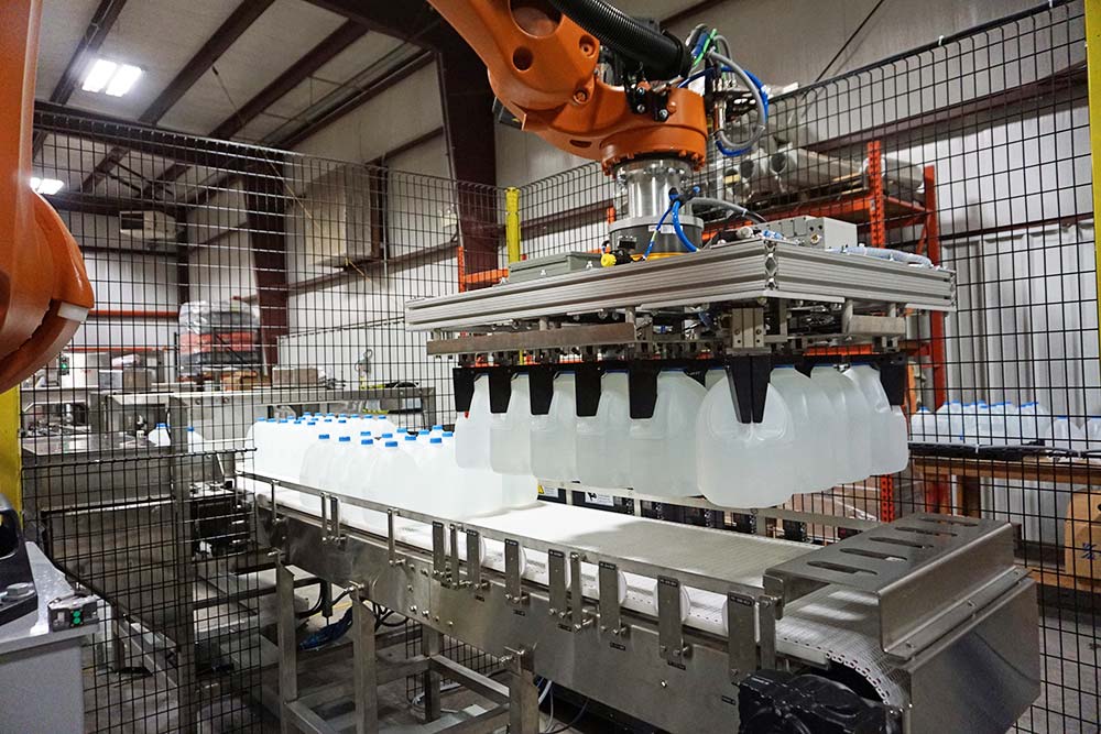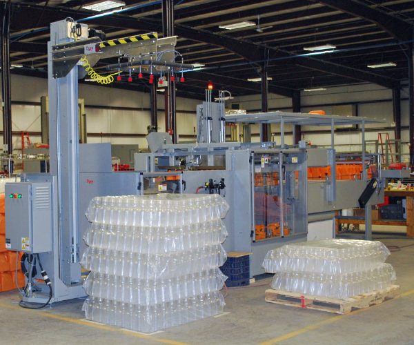 Dyco’s Bagged Bottle Palletizing system has a full line of solutions for handling bagged plastic containers.