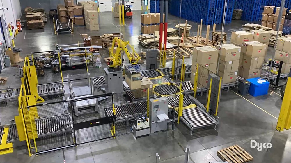 Our solutions simultaneously palletize multiple lines and retain the adaptability to program for future products and packages. Dyco’s solutions offer long-term benefits for most product distribution systems. Trust Dyco’s experience to provide the palletizing solution that fits your production needs and optimizes your operations!