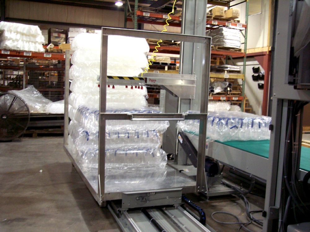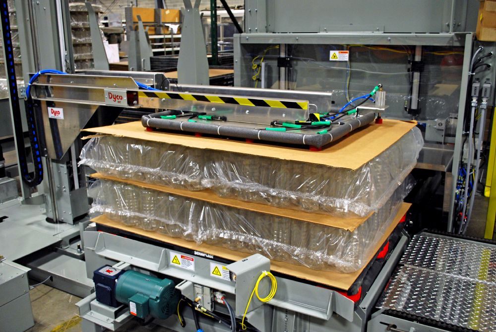 - System can be added to an existing Dyco Rotary Stacker palletizing system